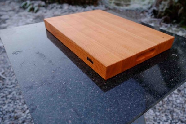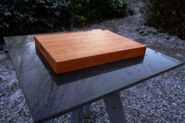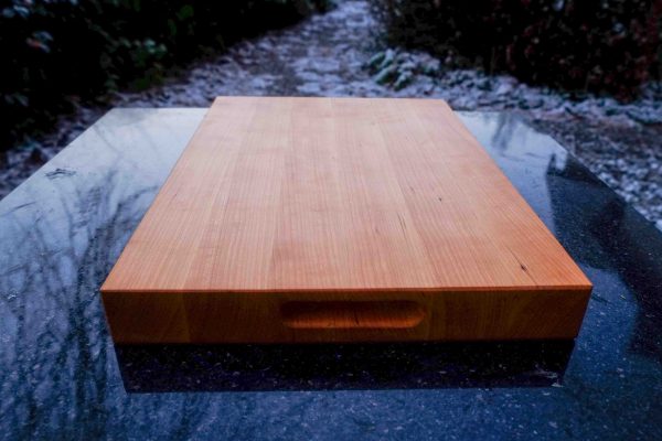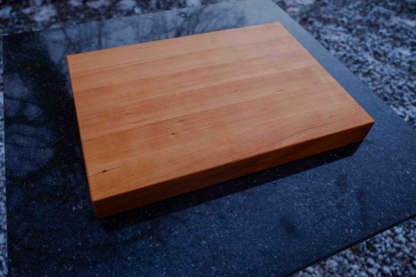 A face grain cutting board in cherry. I is finished with coconut oil, beeswax and carnauba wax.